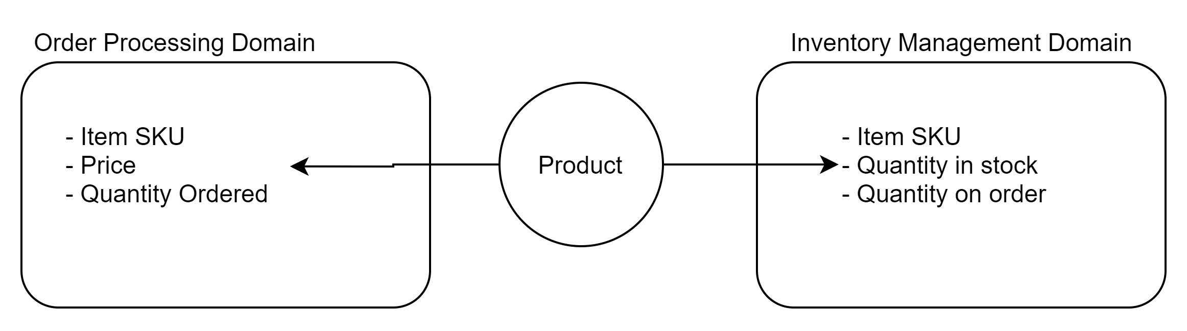 Each model within a bounded context exists only within that context. Take the simple example of an eCommerce application. The term product has several meanings based on who you speak to. In order processing, we care about the price and the quantity of an order. In inventory management, we care about stock levels.